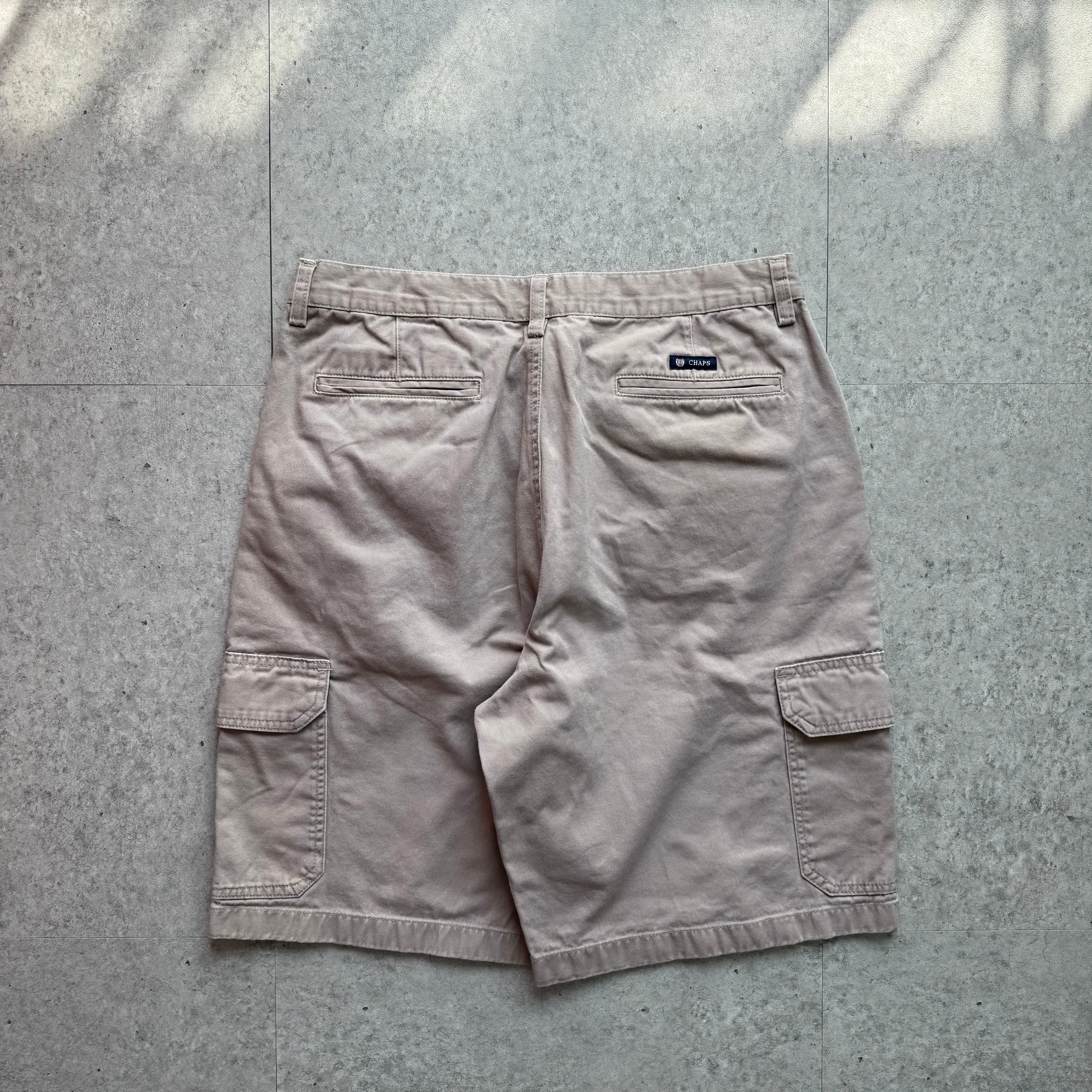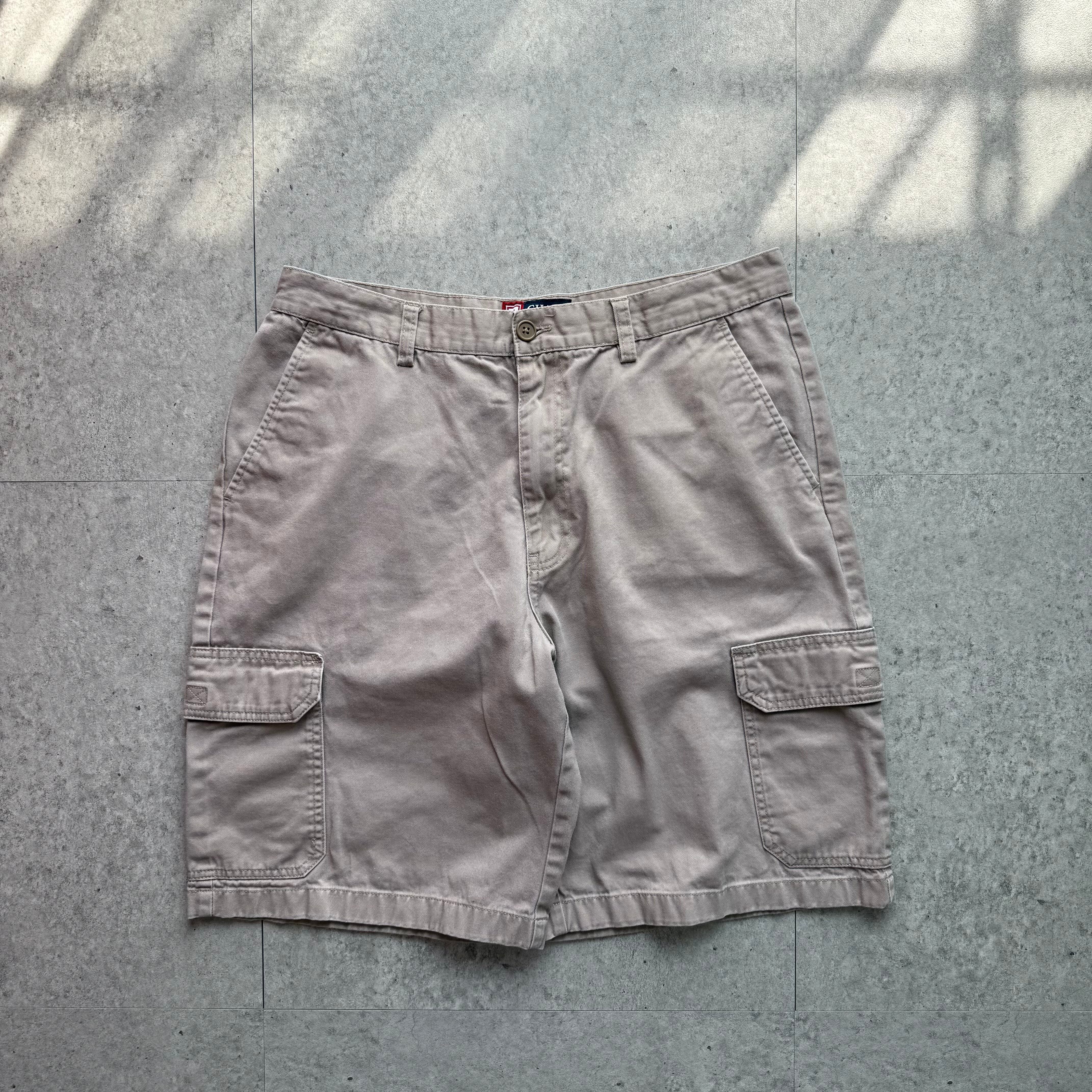 パンツはライトベージュのカーゴショーツ。大きめポケットが特徴でラフな雰囲気のあるパンツです。スウェットと合わせることでスポーティーかつラフな雰囲気にまとまります。