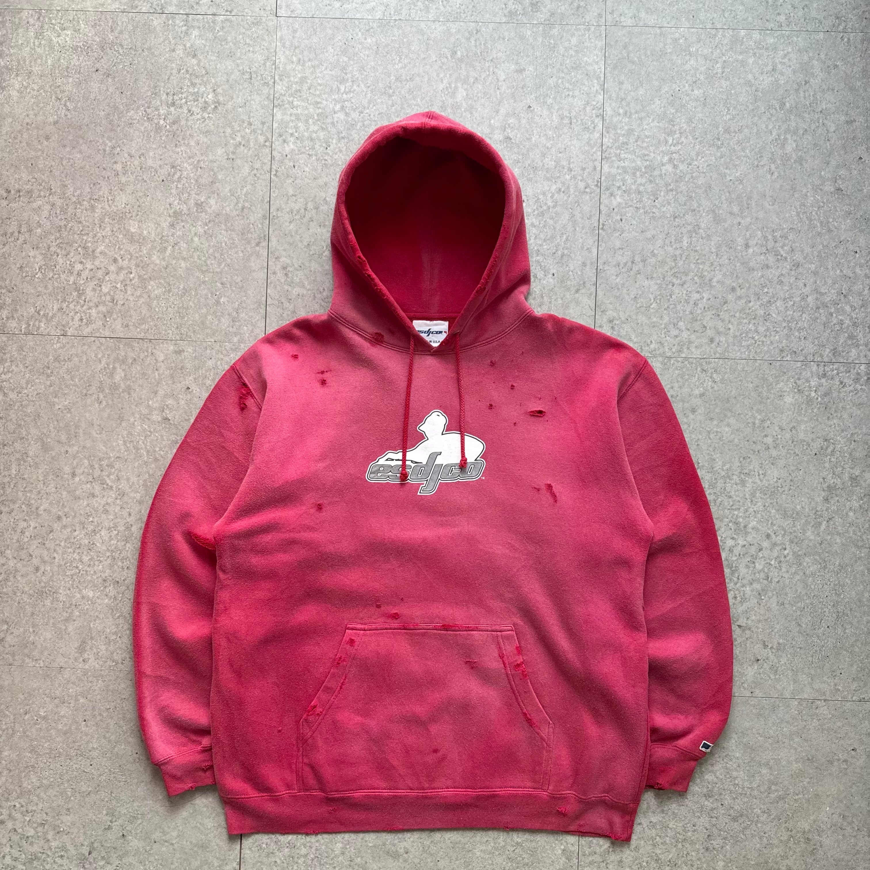 完璧なフェード感とダメージ加工が魅力のmade in USAパーカー。ヴィンテージならではの絶妙な色落ちと使用感がストリートにも映える一着です。程よいゆったりとしたサイズ感でレイヤードもしやすく、シンプルながらも存在感のあるグラフィックがコーデの主役に。デニムショーツとの相性も非常に良く足元だけレザーを入れたあげるとよりかっこいいです!