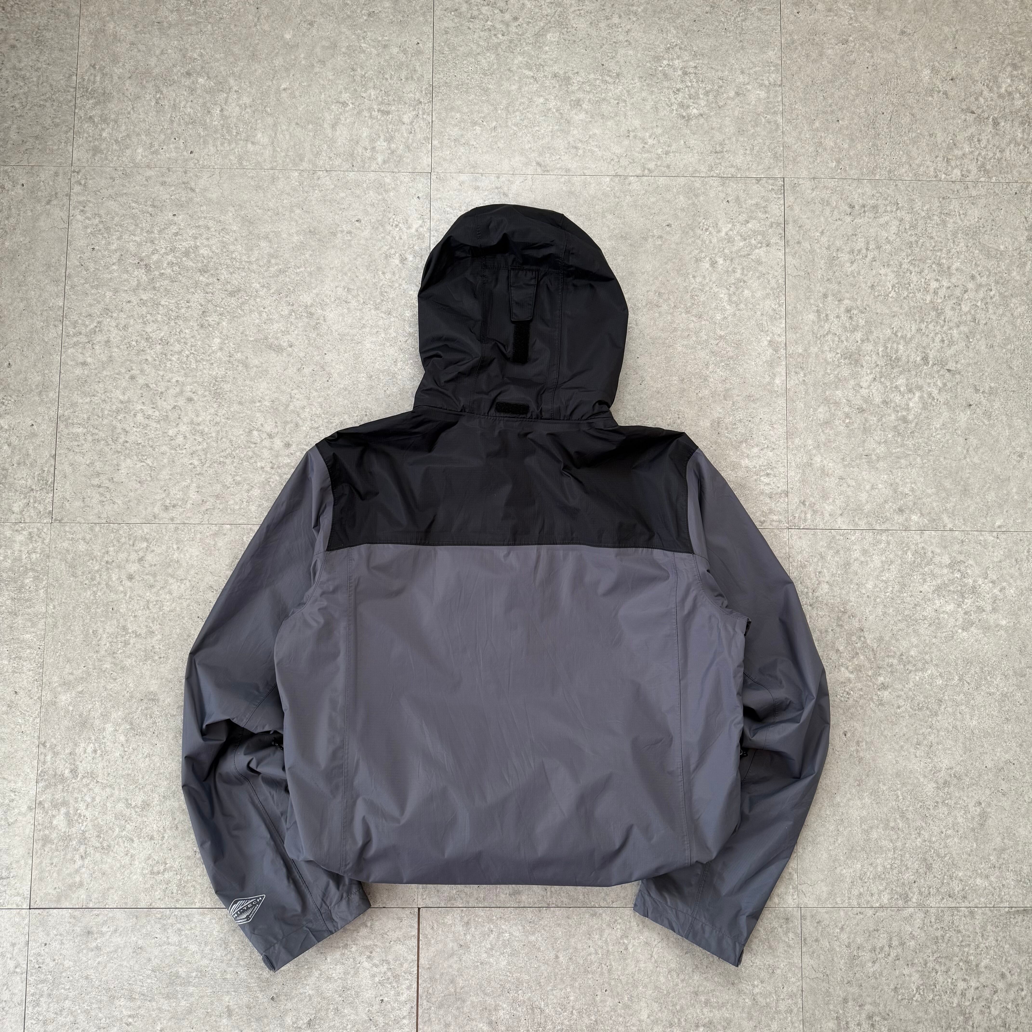 グレー×チャコールの配色が特徴的なColumbiaのマウンテンパーカー。古着らしい軽い擦れや柔らかく馴染んだ素材感があり、アウトドアウェアでありながら都会的な雰囲気に落とし込める1着です。ワッチキャップやスポーティな小物とも抜群にハマり、黒スニーカーと合わせるとよりスタイリッシュな印象に。