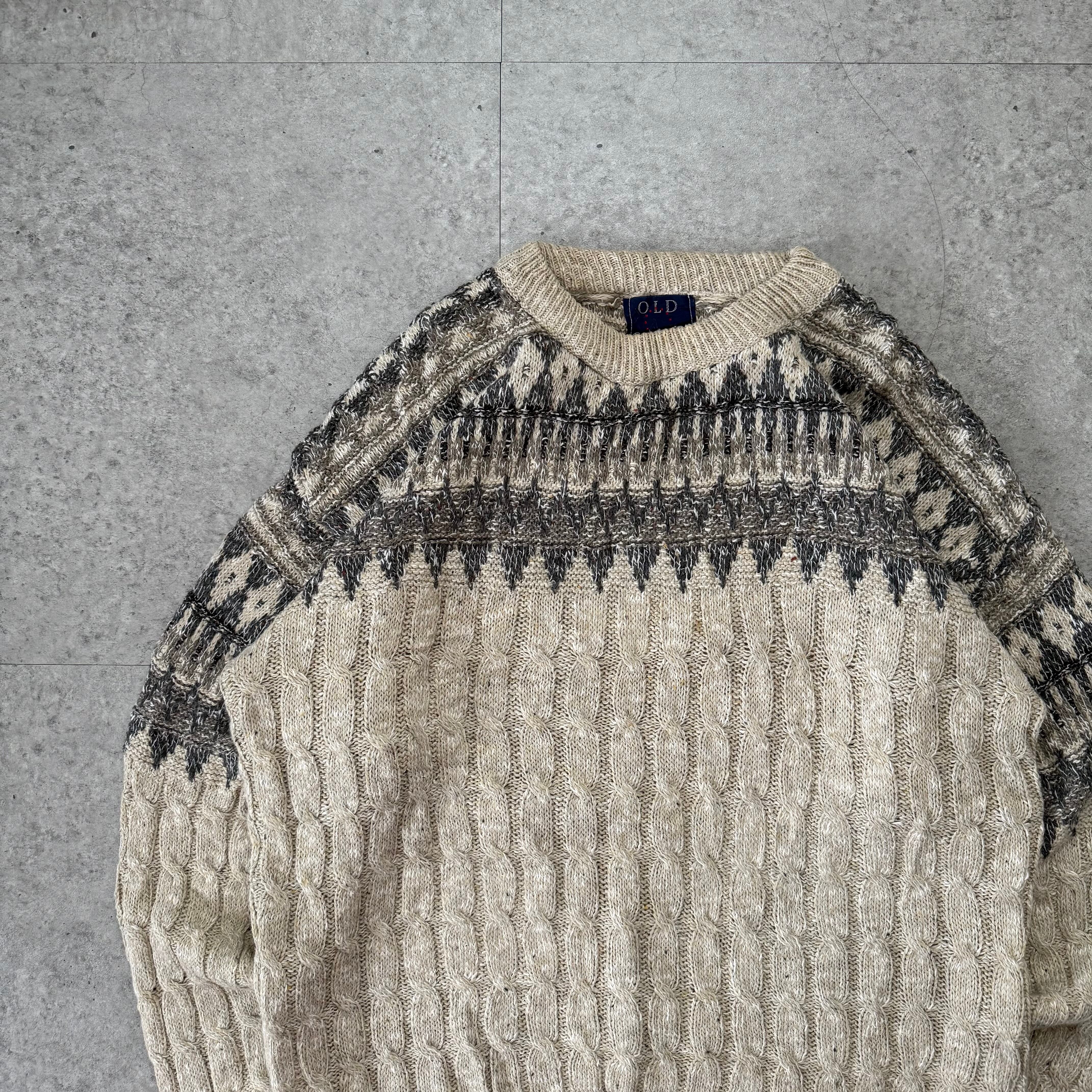 柔らかく編まれたフェアアイル柄ニットは、古着ならではの空気をまとった1枚。生成りベースにグレーのパターンが上品で、冬らしい温かみをしっかり感じさせてくれます。白系キャップやレザーシューズとの相性も抜群で、明るいトーンながら深みのある落ち着いたスタイルに仕上がります。