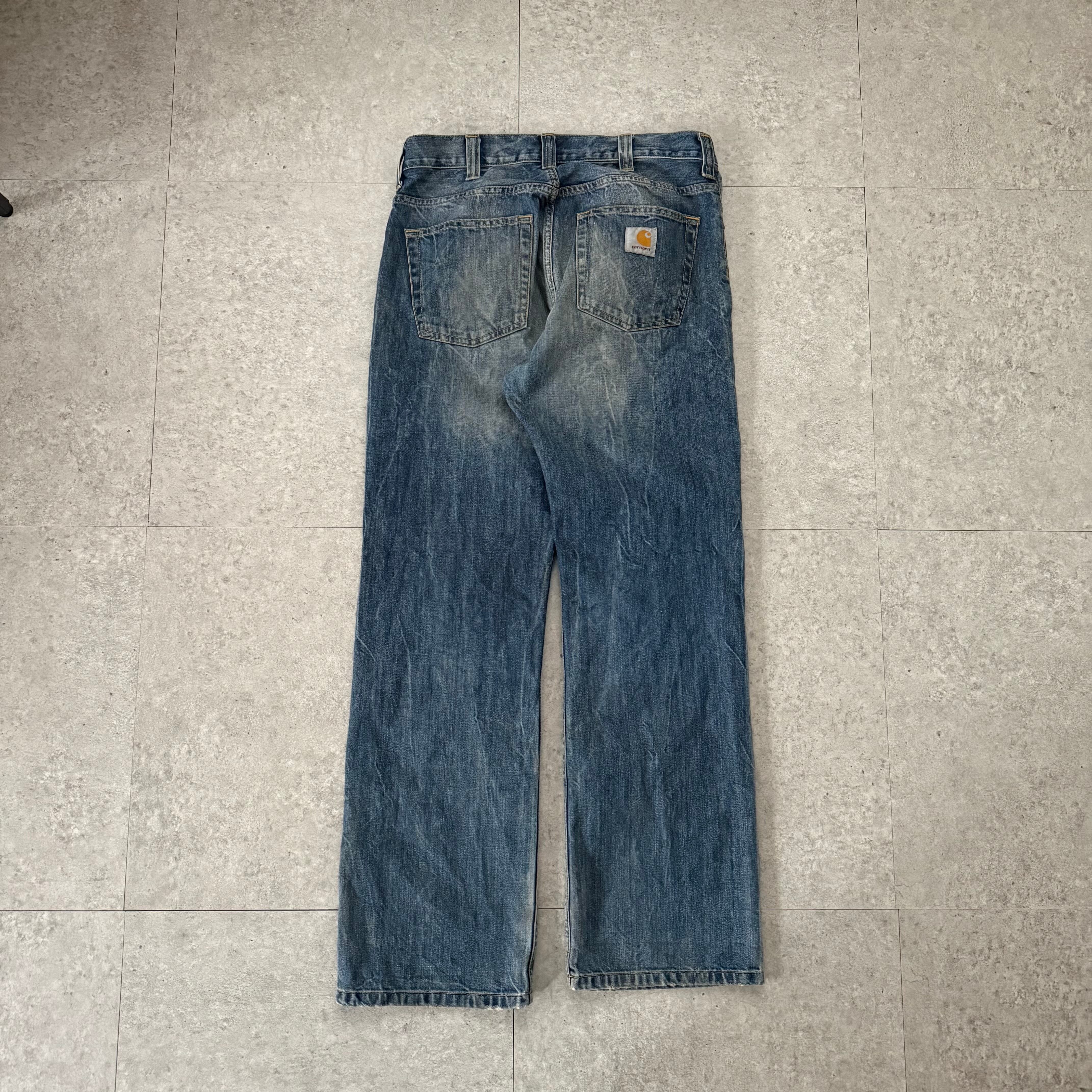 ボトムスは色落ちの表情が良いストレートデニムをセレクト。縦に落ちるヒゲと自然なフェード感が、トップスのボリュームをしっかり受け止めてくれます。太すぎず細すぎないシルエットなので、スタジャンをオーバーサイズで着たときのバランスが非常に良い一本。足元は革靴で締めても、スニーカーで外してもハマります。