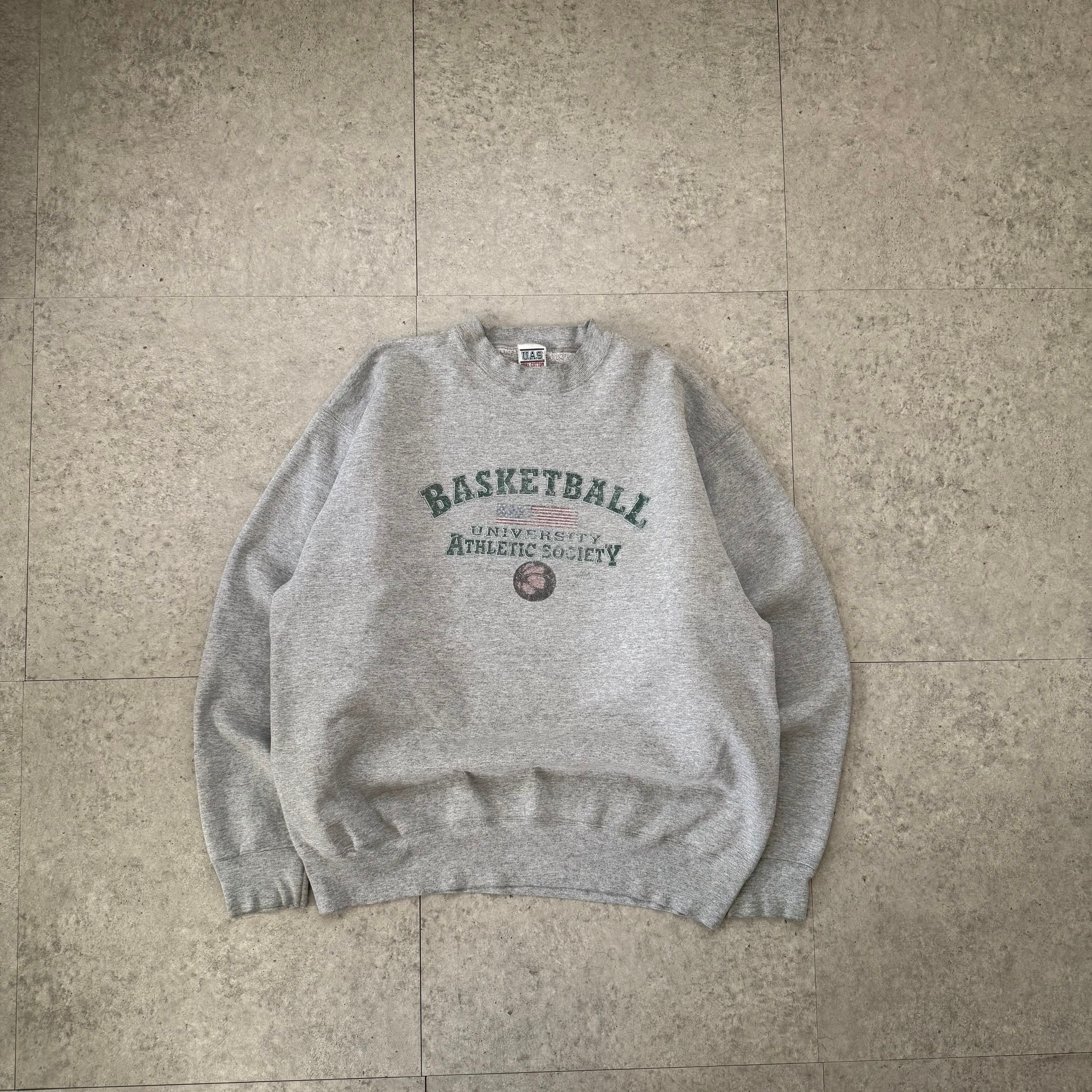 インナーにはグレーのカレッジスウェットを合わせ、スタジャンの色味を拾うことで統一感のあるレイヤードに。程よくフェードしたプリントが、スタジャンの重厚さを中和してくれるため、ゴリゴリになりすぎず抜け感のある印象に仕上がっています。1枚で着てもサマになる万能スウェット。