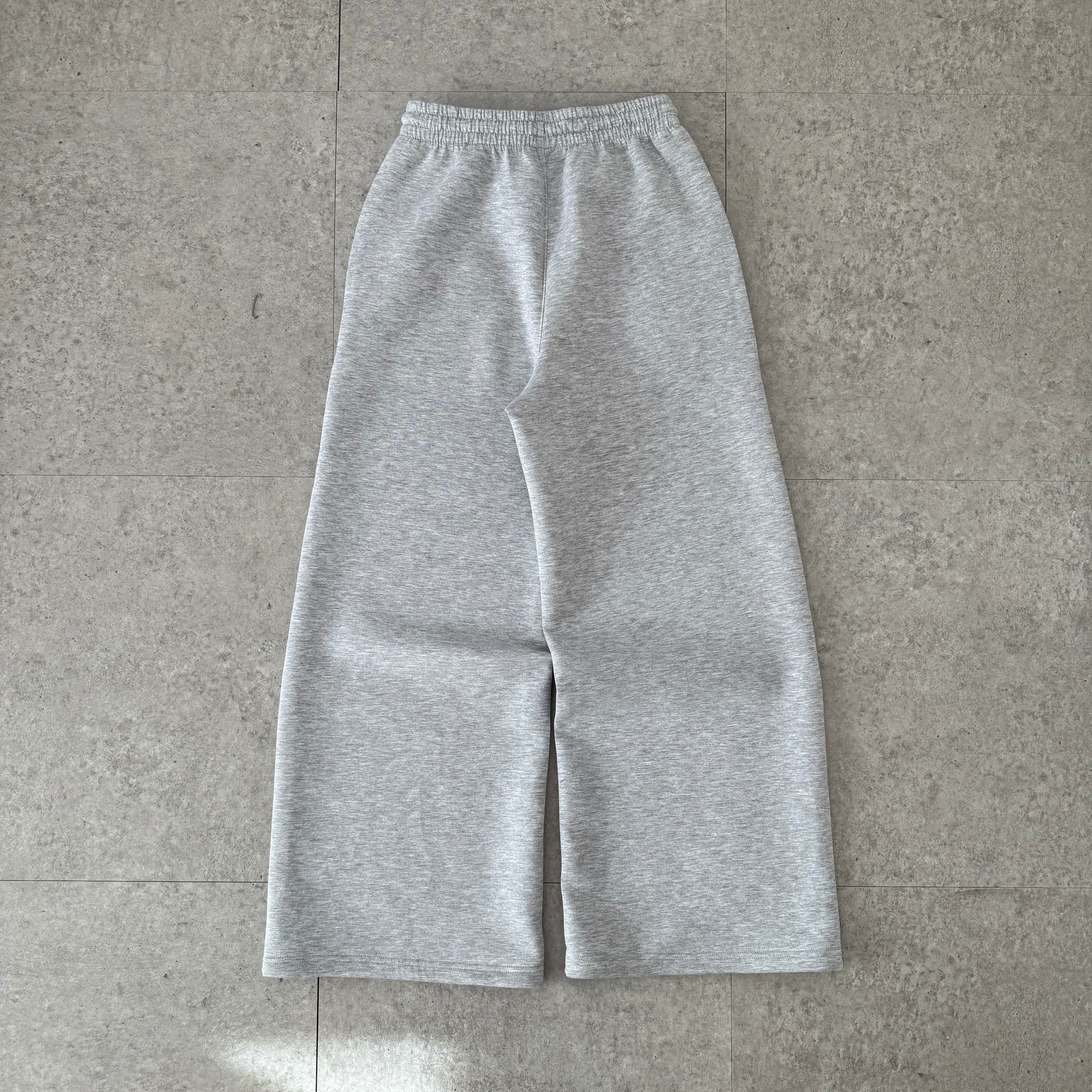 パンツはグレーのスウェットパンツ。