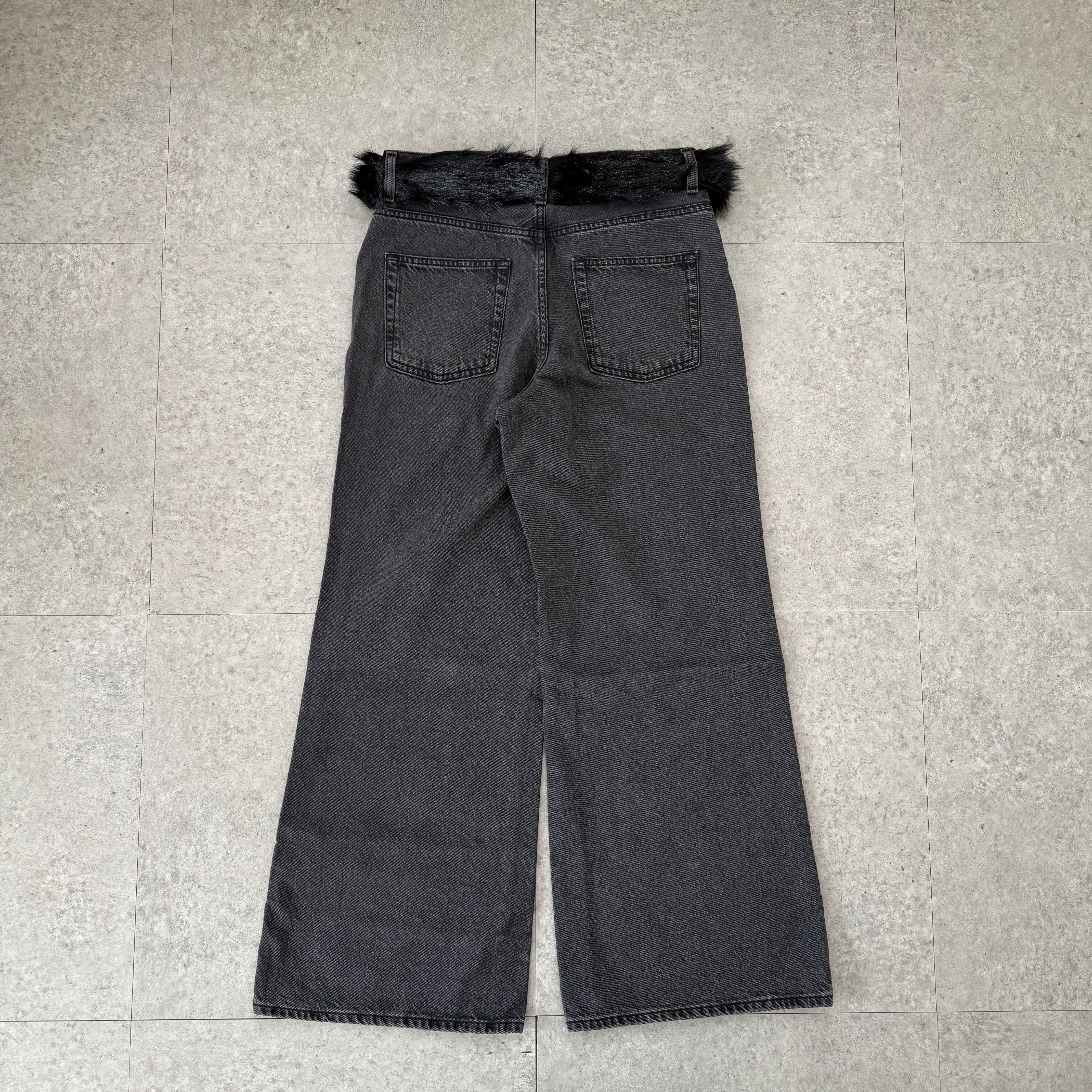 パンツは深めのブラックをベースに、自然な色落ちが出たフェードデニム。
