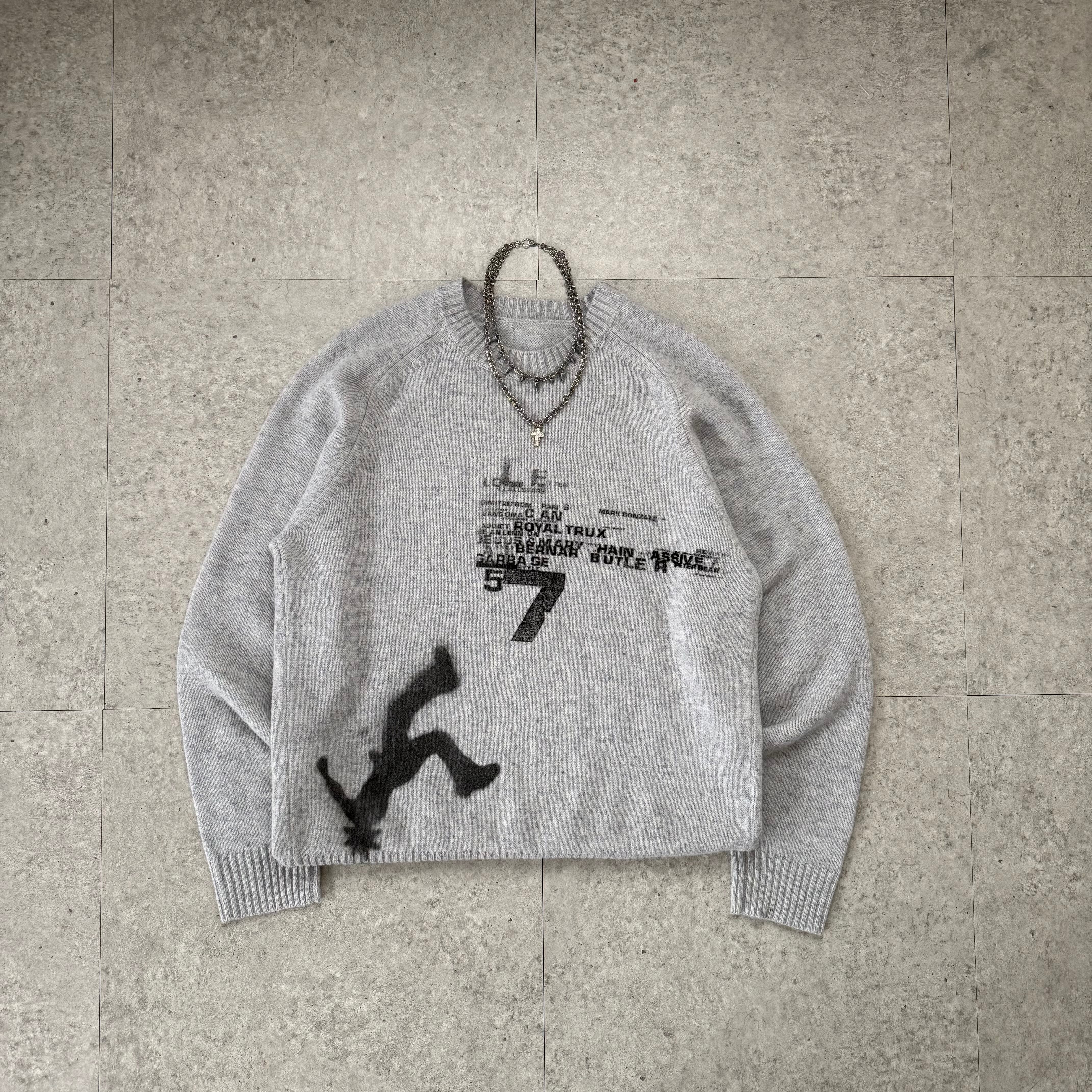 フロントに大胆なグラフィックを落とし込んだニットトップス。