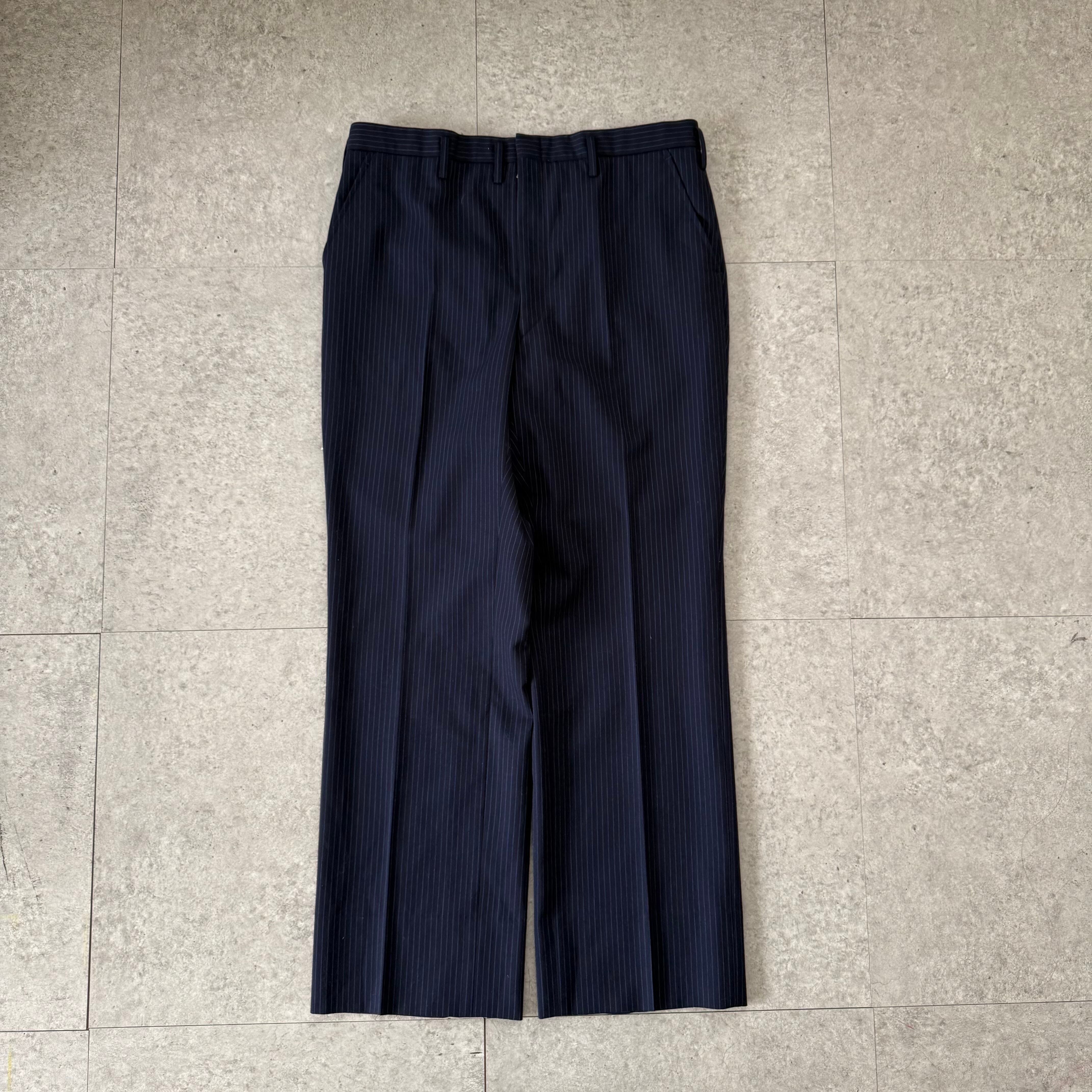 ネイビーのすごく形の綺麗なピンストライプスラックスを合わせて、クラシック寄りに。柄×柄ですが、色味を抑えていて、シルエットも綺麗なためうるさくならず、むしろこなれ感のある印象に。スニーカーで外しているのもポイント。