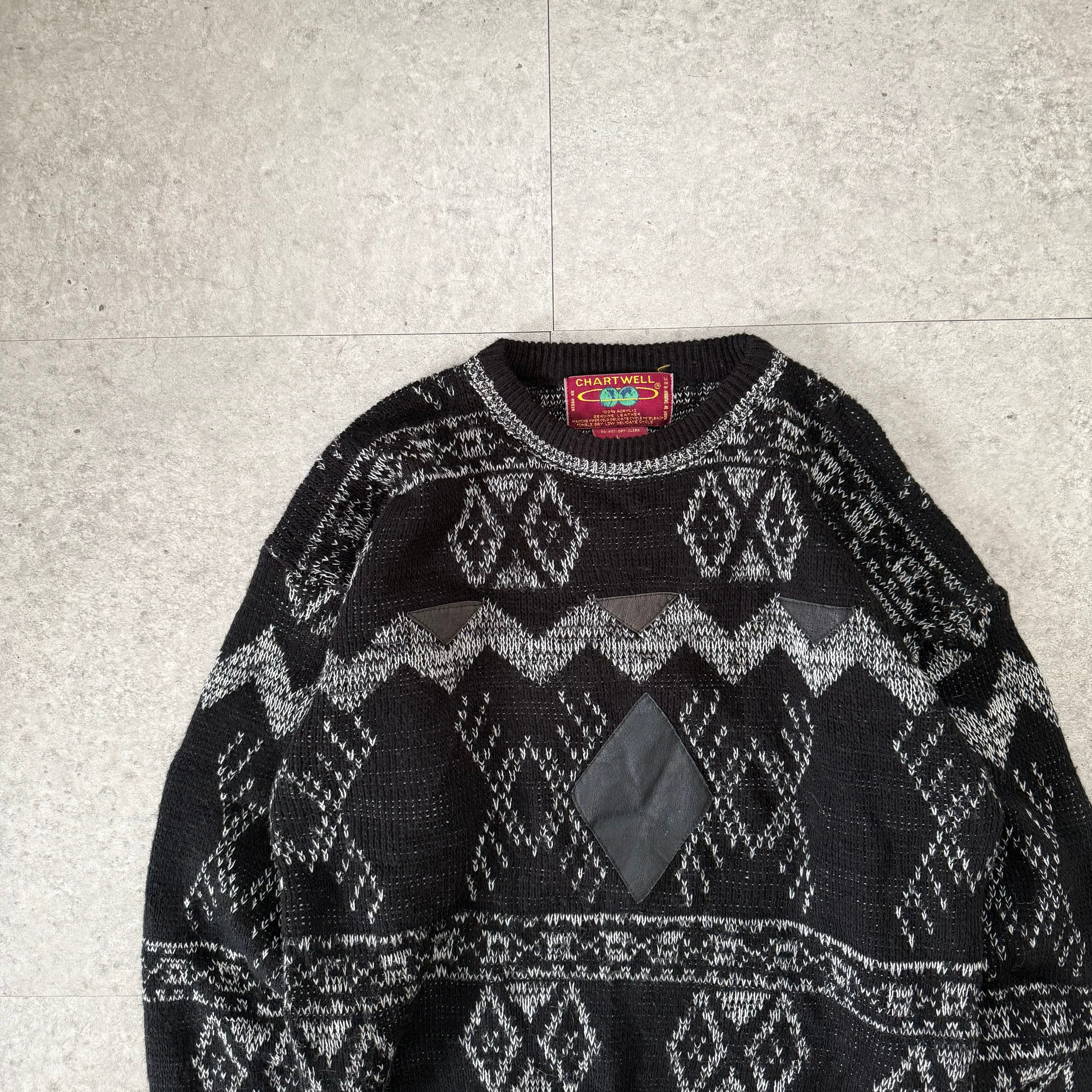 styling set – vintage leather jacket × pattern knit × wide slacks (modern classic black)