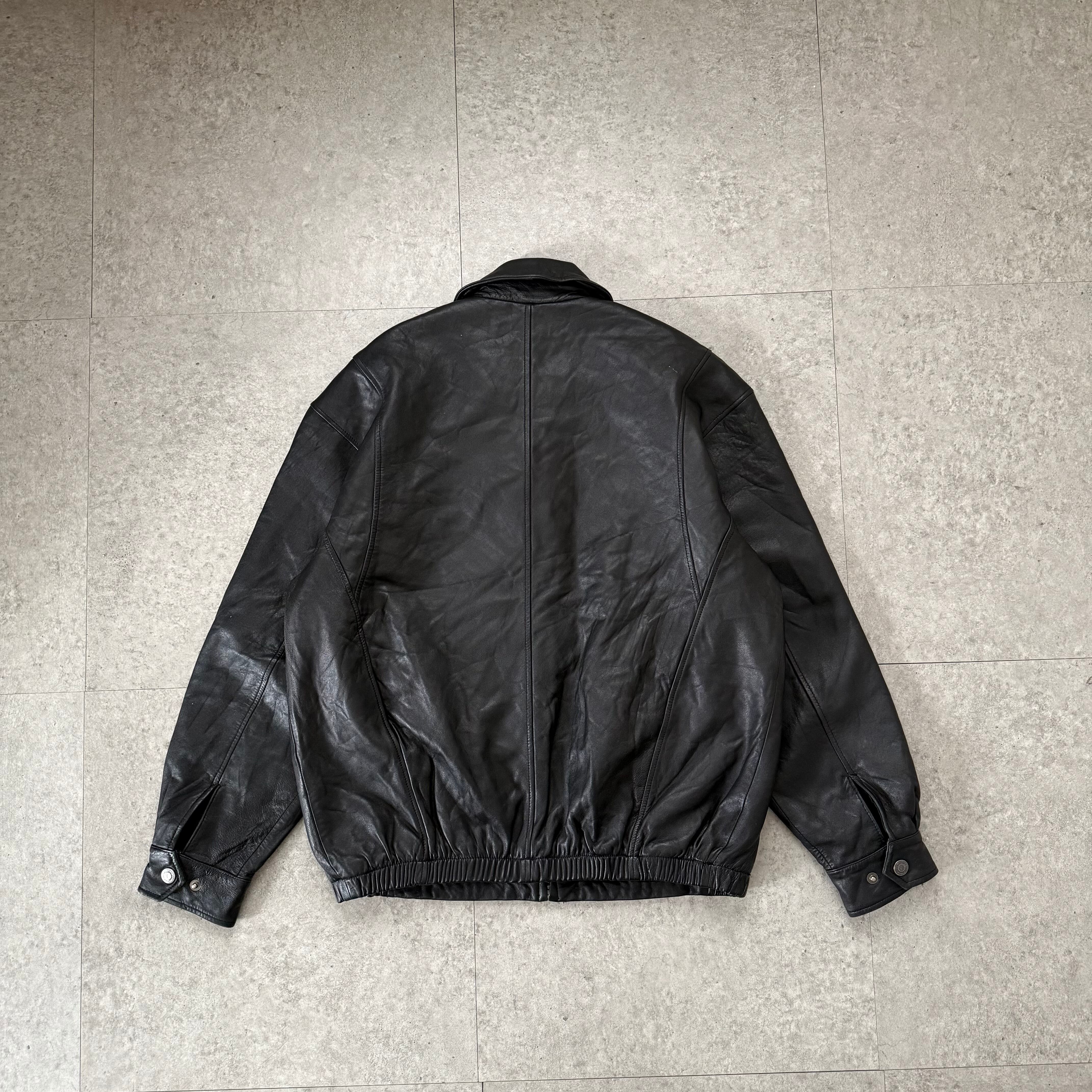 ストンと落ちる綺麗なラインでレザーの無骨さを中和し、街着として着やすいバランスに調整しています。革靴はもちろん、スニーカーでも成立する万能なシルエット。古着らしい雰囲気を残しつつ、今っぽく着れる王道の組み合わせです。