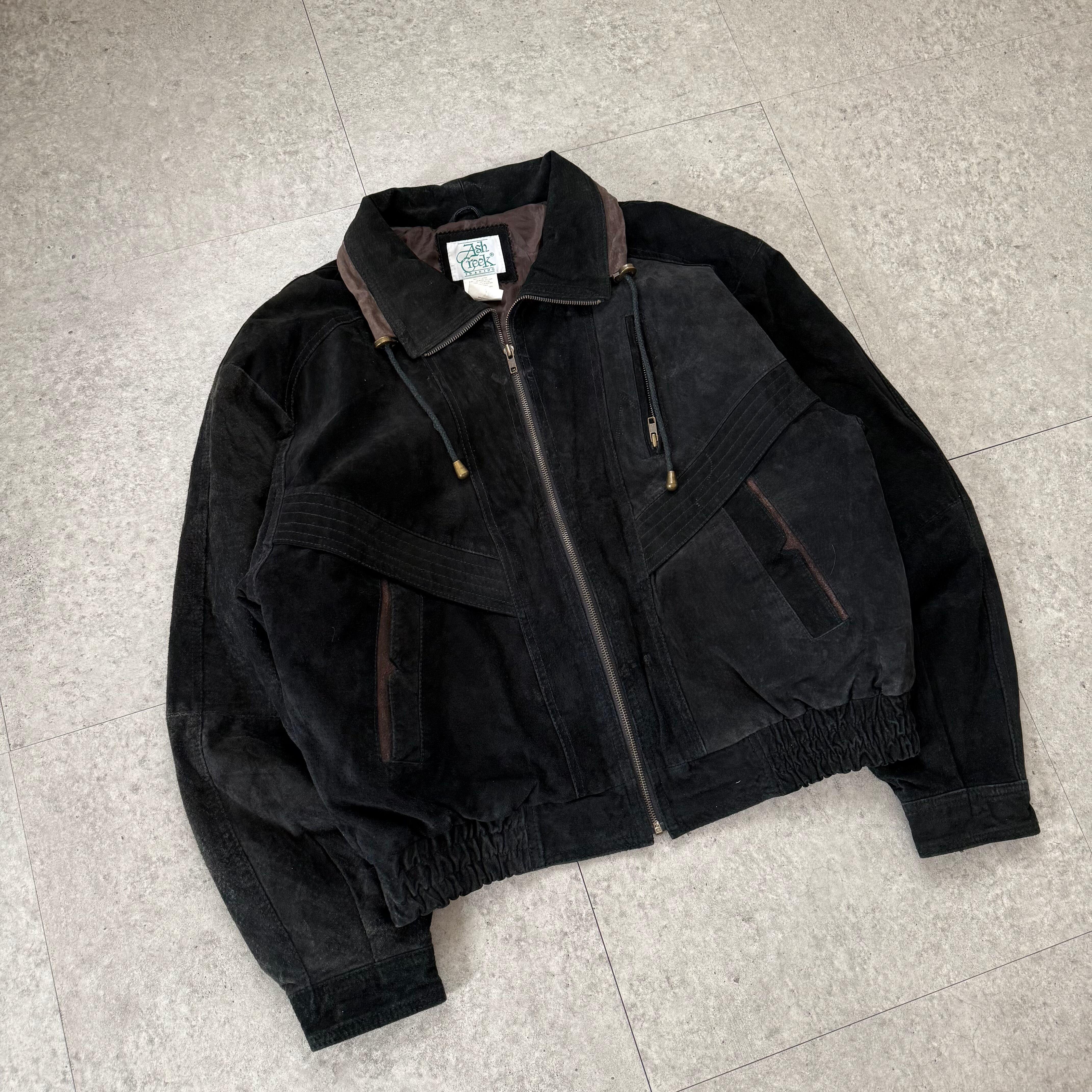 短丈のレザーに対してパーカーのボリュームをあえて残すことで、90sストリートの空気感とモードのバランスを両立。襟のレザー切替や立体パネルがシンプルなブラックでも単調に見せず、スタイリングの主役になる1着です。