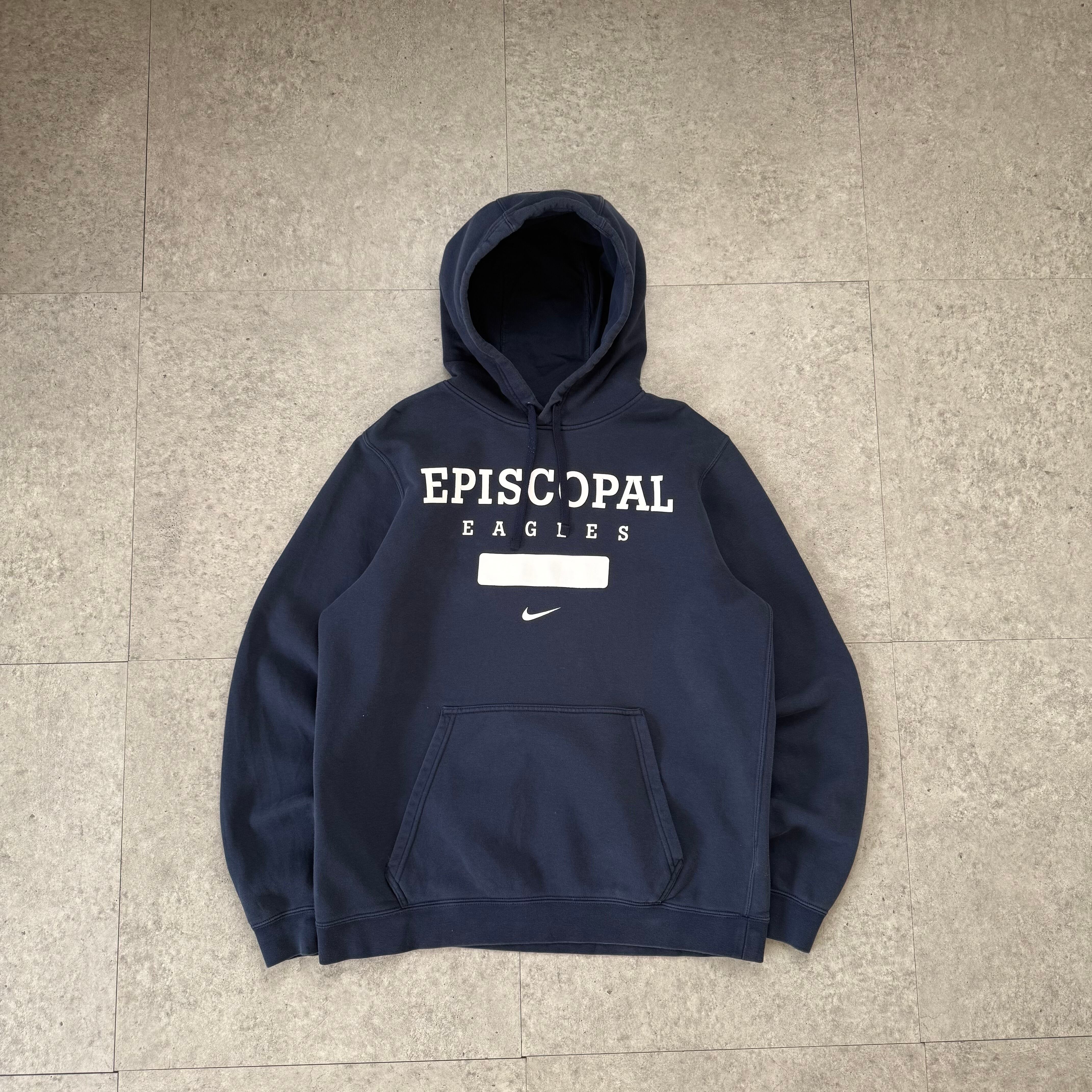 ネイビーのEpiscopal Eaglesパーカーを主役にした、クールでシンプルなストリートコーデ。